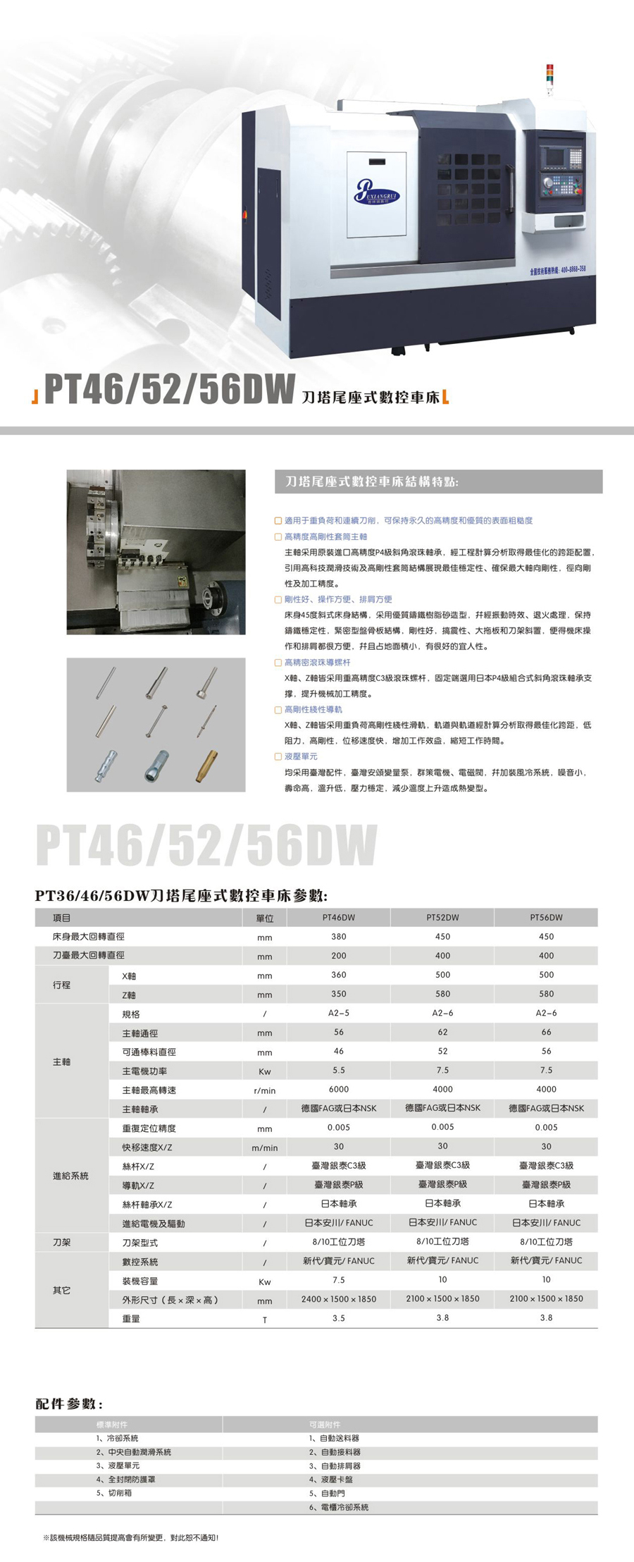 产品名称:刀塔尾座式数控车床 产品型号:PT46/52/56DW 查看次数: