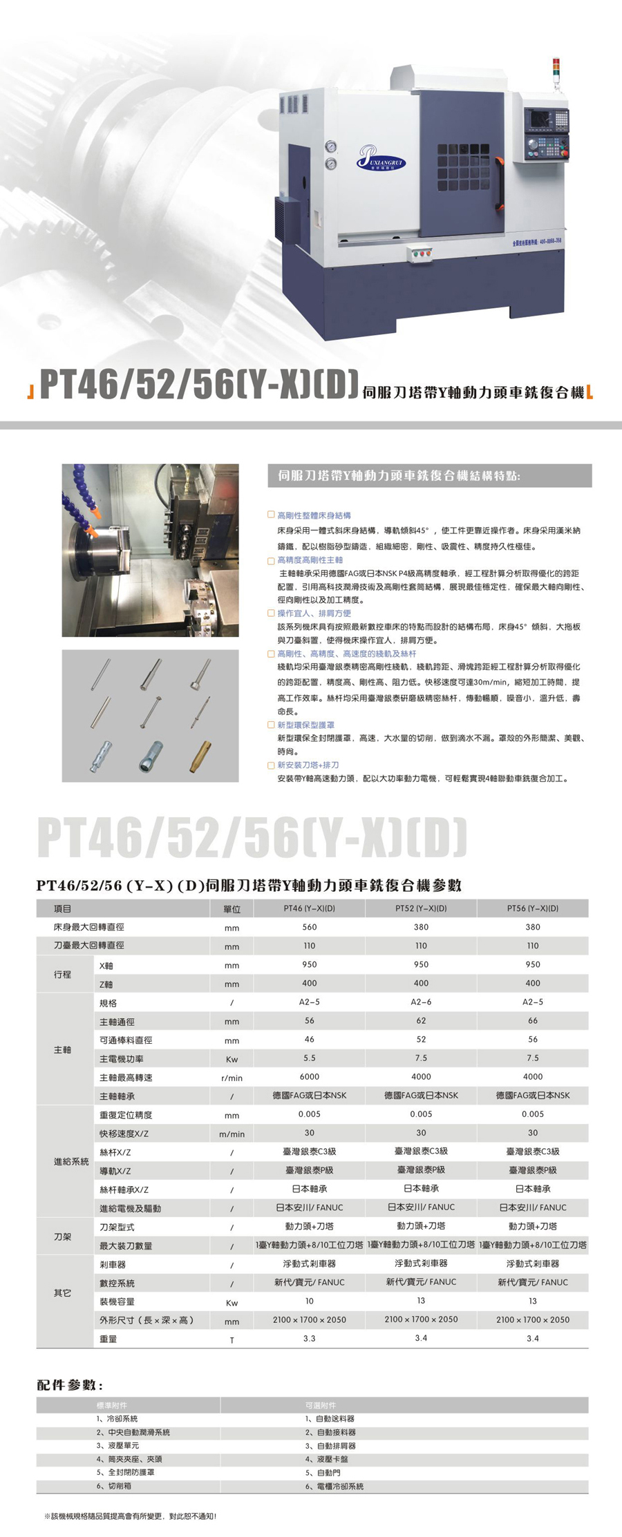 产品名称:伺服刀塔带Y轴动力头车铣复合机 产品型号:PT46/52/56[Y-X][D] 查看次数:
