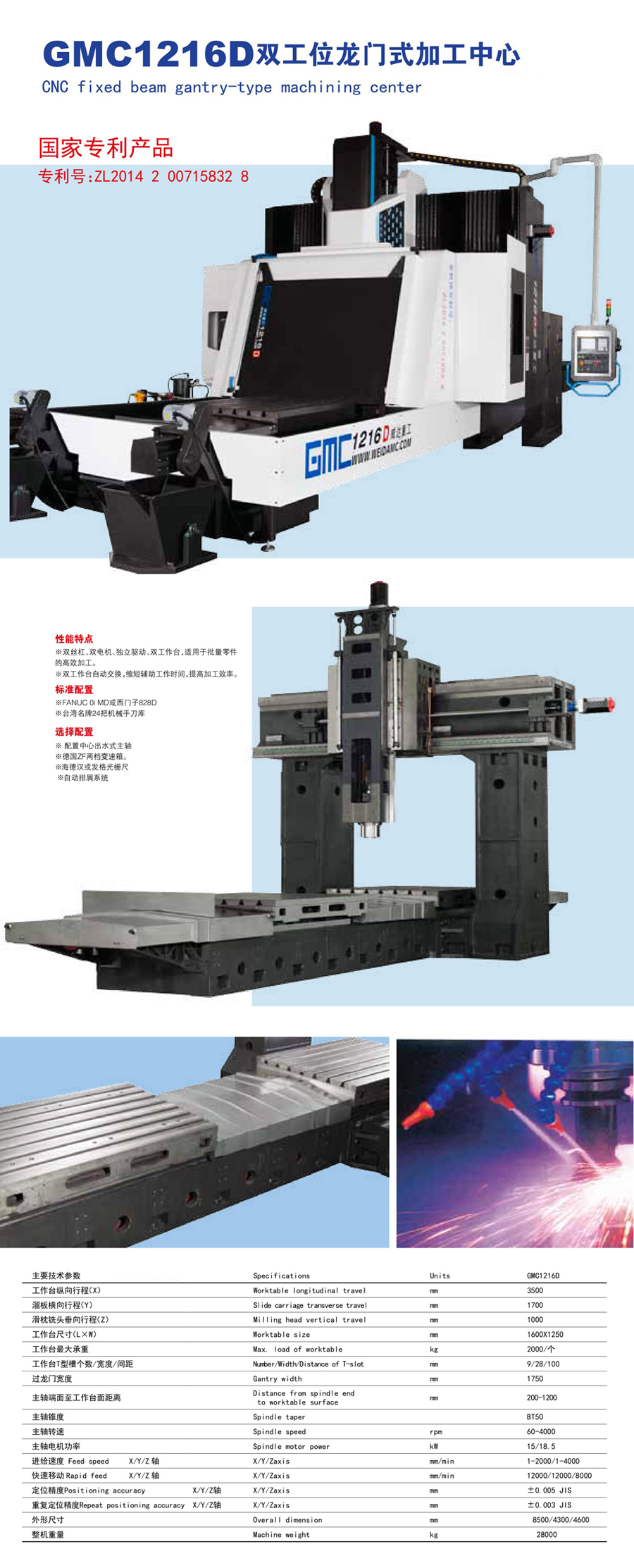 产品名称:双工位龙门式加工中心 产品型号:GMC1216D 查看次数:
