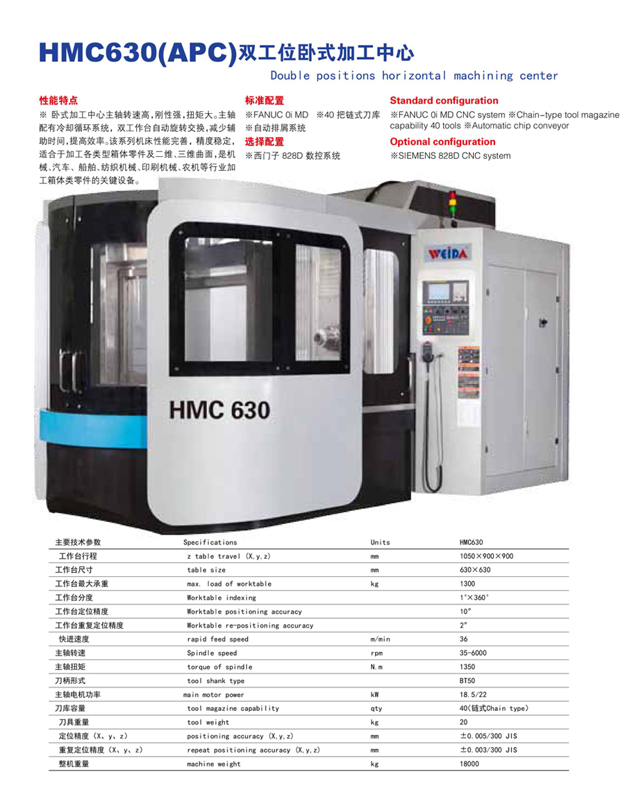 产品名称:双工位卧式加工中心 产品型号:HMC630(APC) 查看次数: