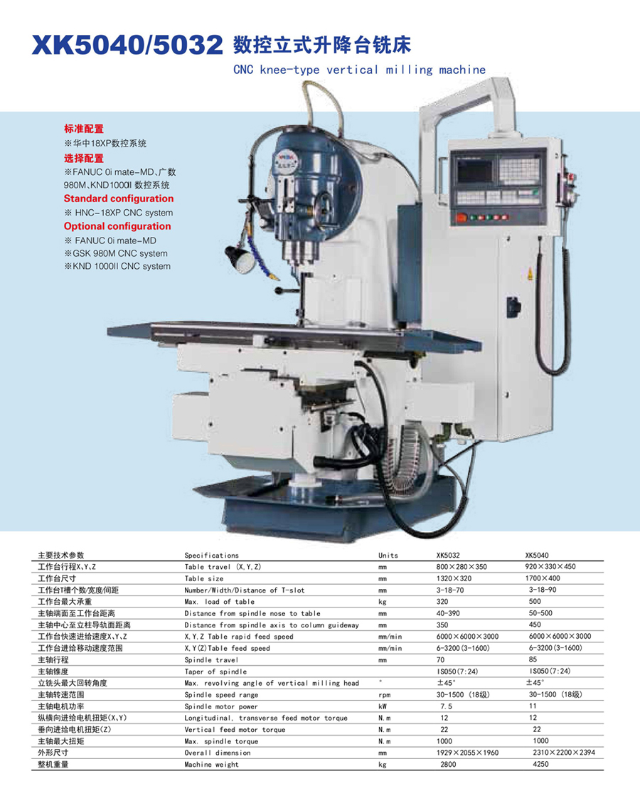 产品名称:数控立式升降台铣床 产品型号:XK5040/5032 查看次数: