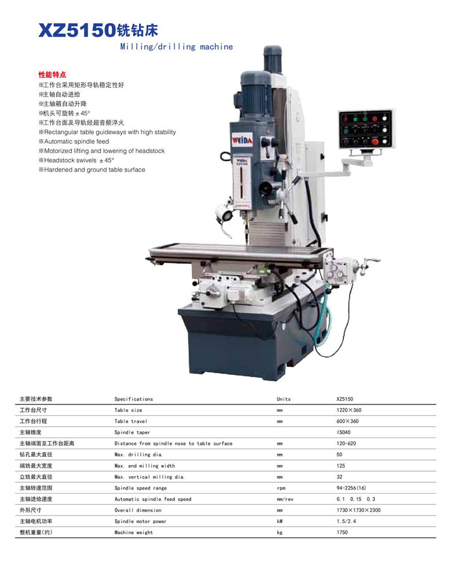 产品名称:铣钻床 产品型号:XZ5150 查看次数:
