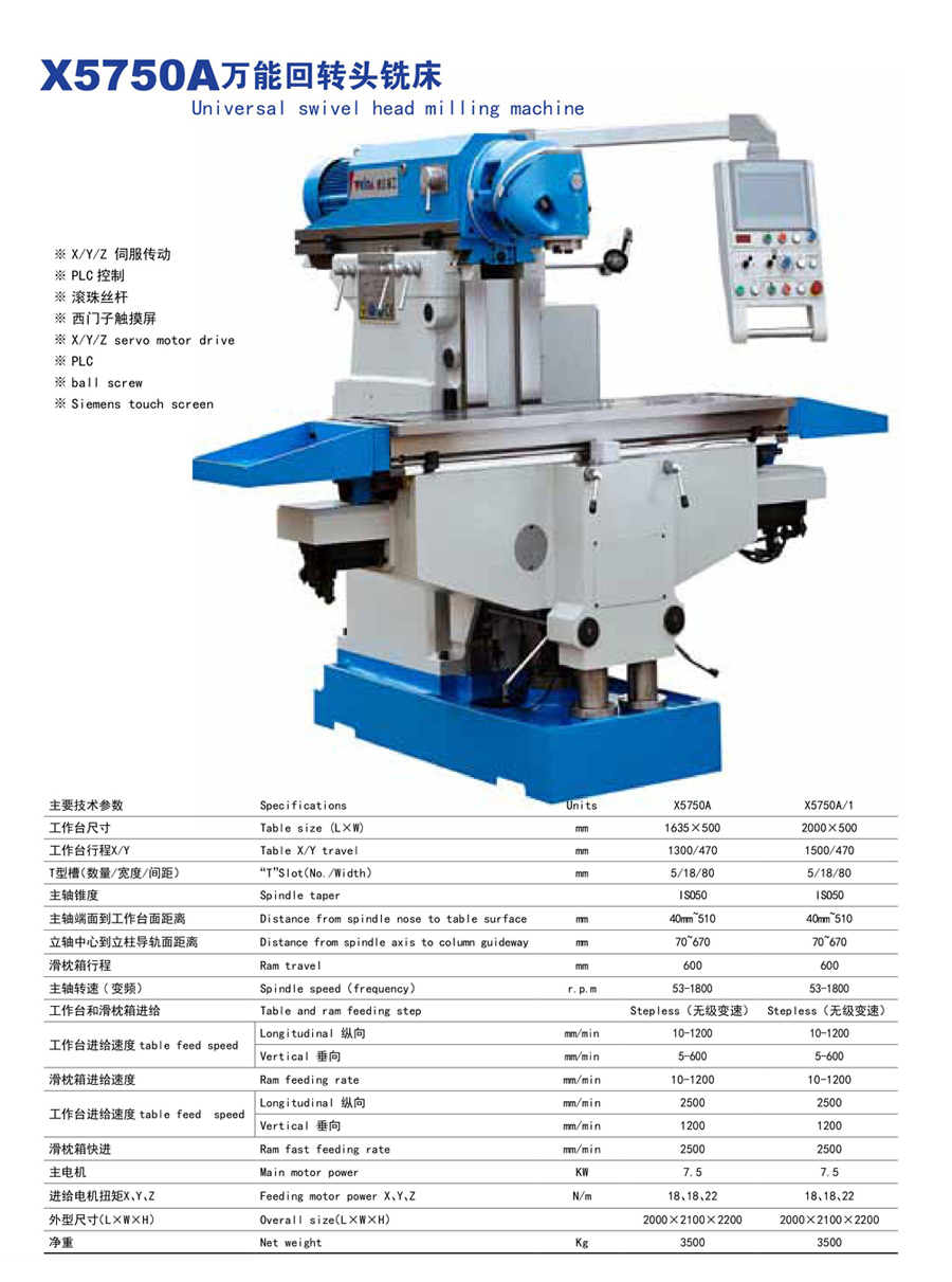 产品名称:万能回转头铣床 产品型号:X5750A 查看次数: