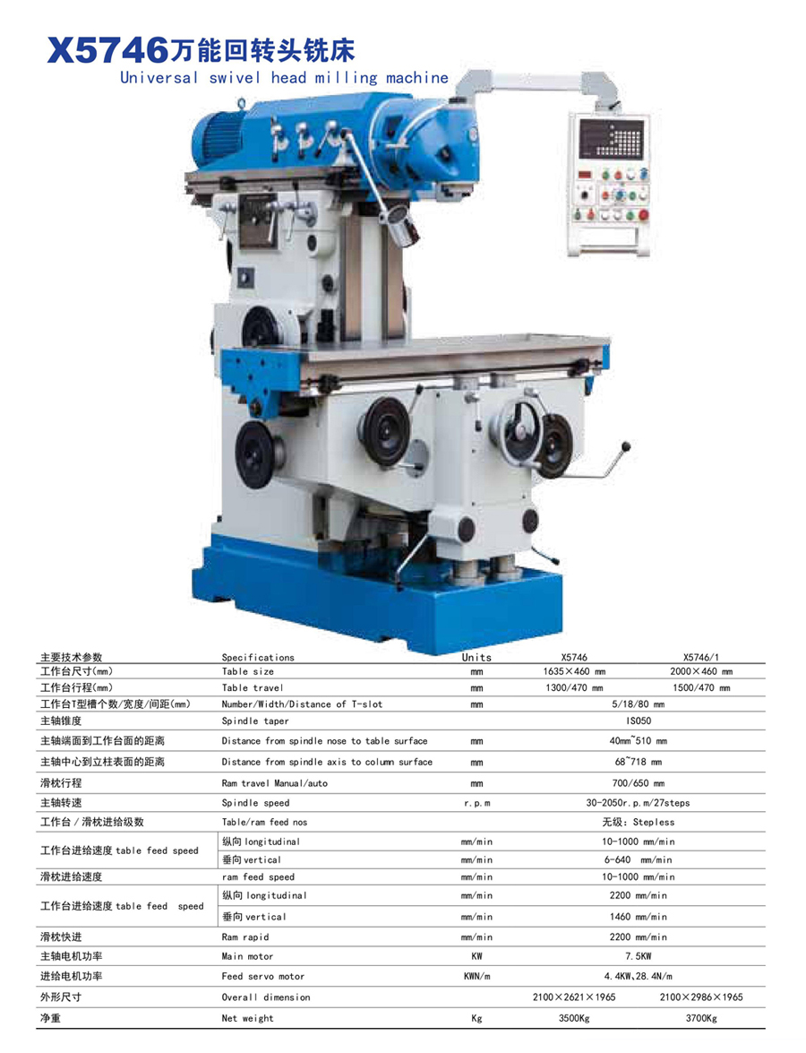 产品名称:万能回转头铣床 产品型号:X5746 查看次数: