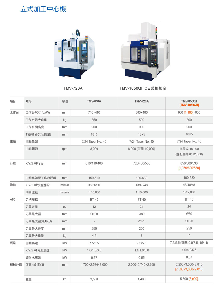 产品名称:立式加工中心机 产品型号:TMV-720A/TMV-1050QII规格钣金 查看次数: