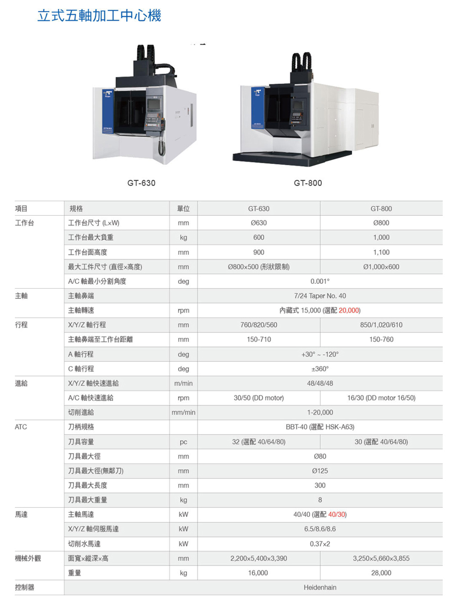 产品名称:立式五轴加工中心机 产品型号:GT-630/GT-800 查看次数: