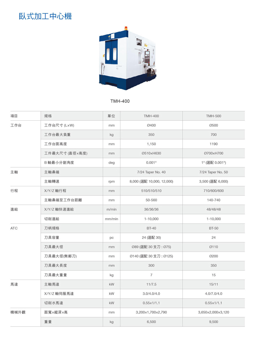产品名称:卧式加工中心机 产品型号:TMH-400 查看次数: