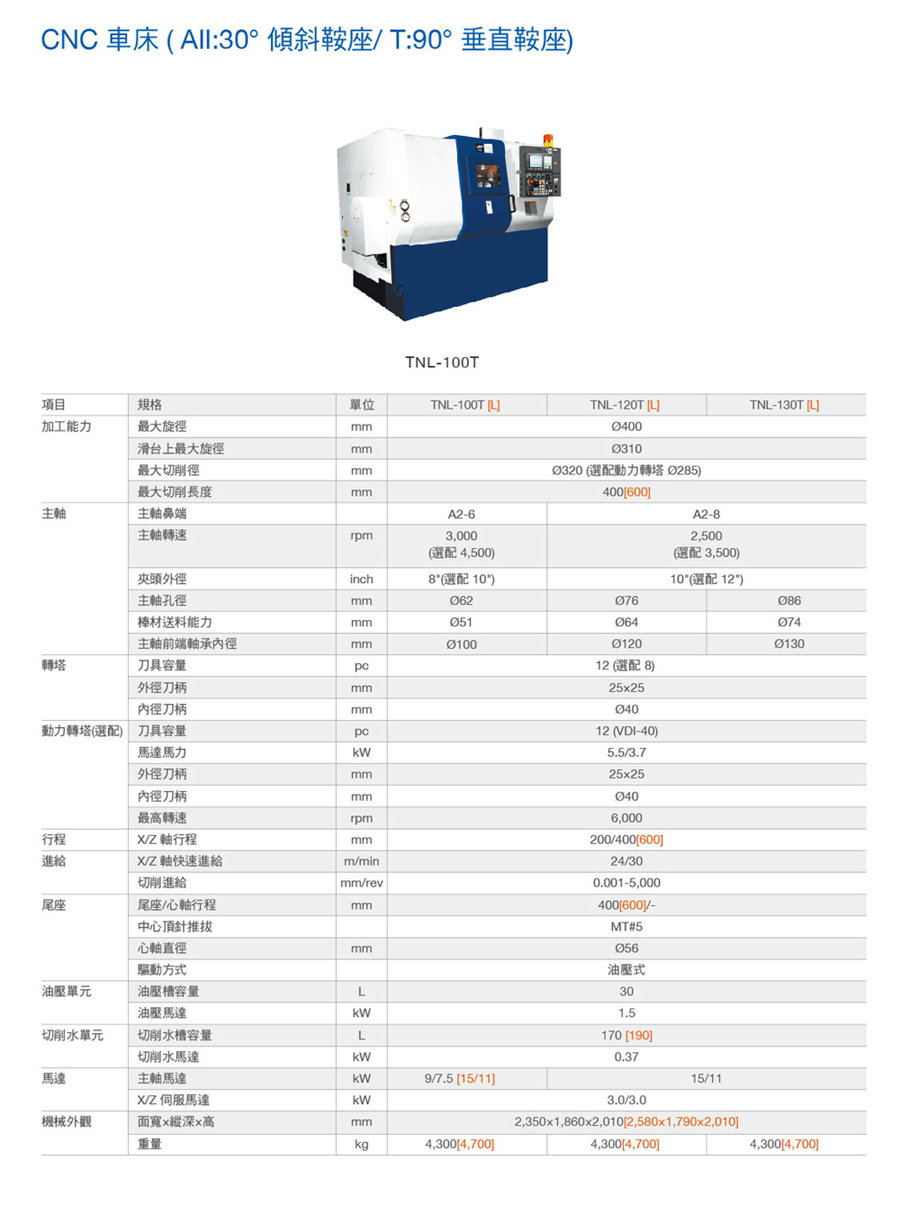 产品名称:CNC车床(AII:30°倾斜鞍座/T:90°垂直鞍座) 产品型号:TNL-100T 查看次数: