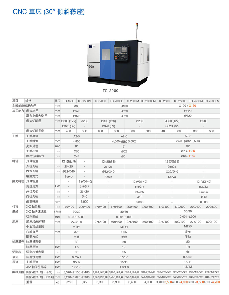 产品名称:CNC车床(30°倾斜鞍座) 产品型号:TC-2000 查看次数: