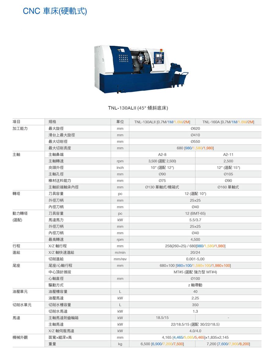 产品名称:CNC车床(硬轨式) 产品型号:TNL-130ALII(45°倾斜车床) 查看次数: