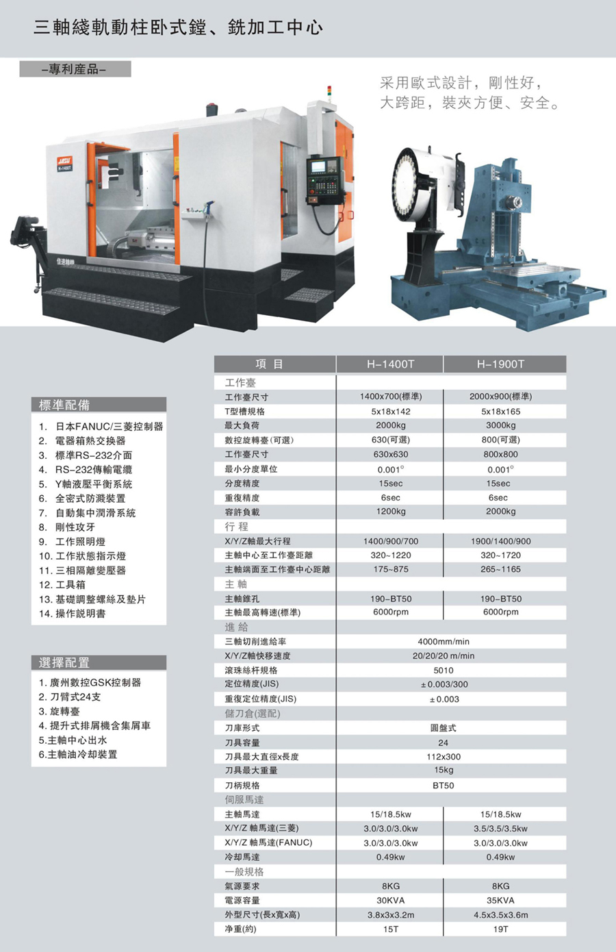 产品名称:三轴线轨动柱卧式镗、铣加工中心 产品型号:H-T 查看次数: