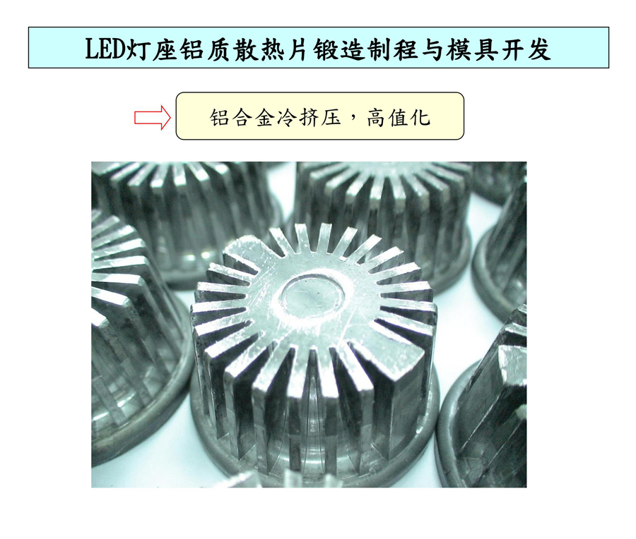 产品名称:LED灯座铝质散热片锻造制程与模具开发 产品型号: 查看次数: