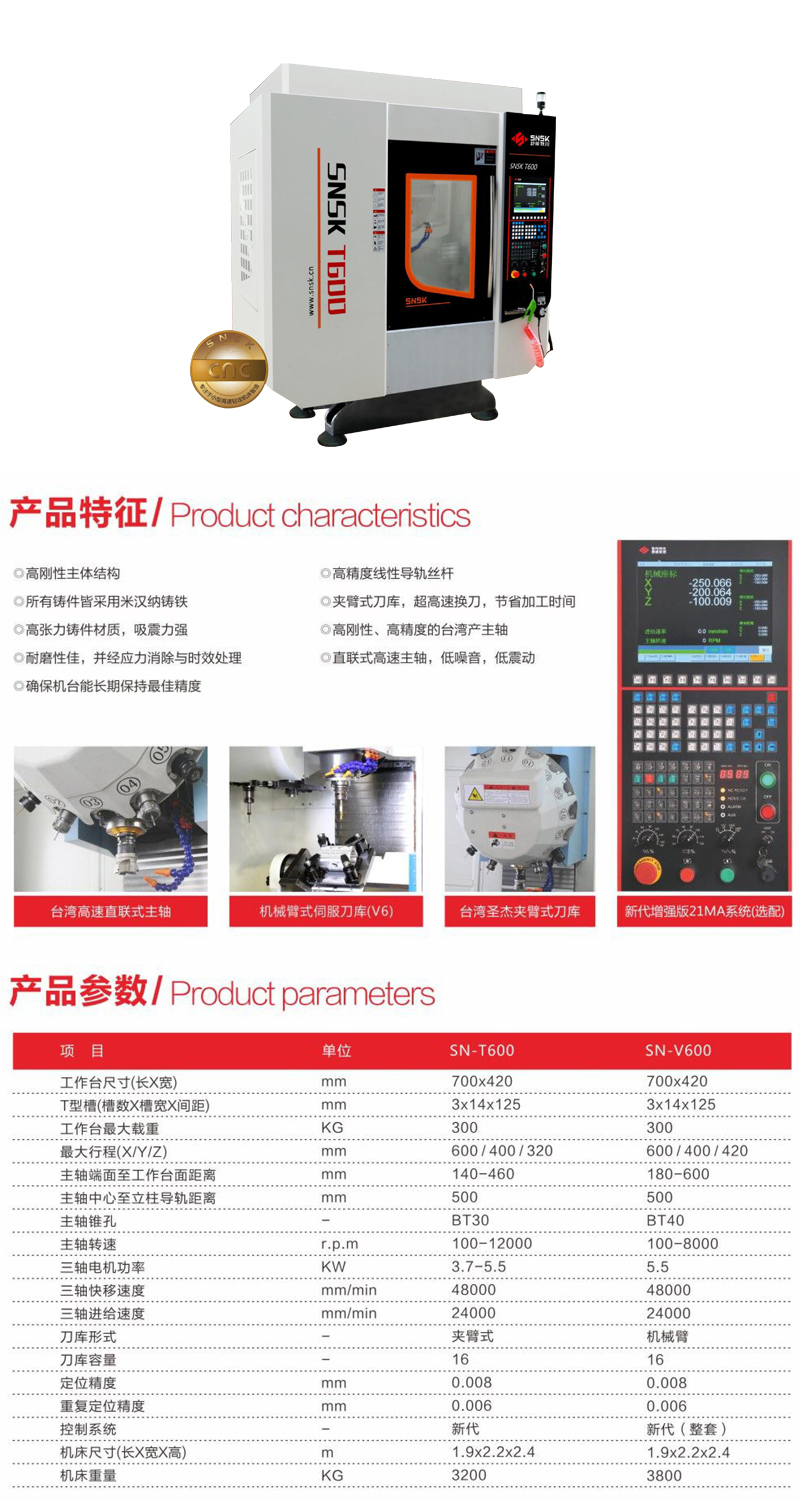产品名称:高速钻攻中心 产品型号:SN-T600 查看次数:
