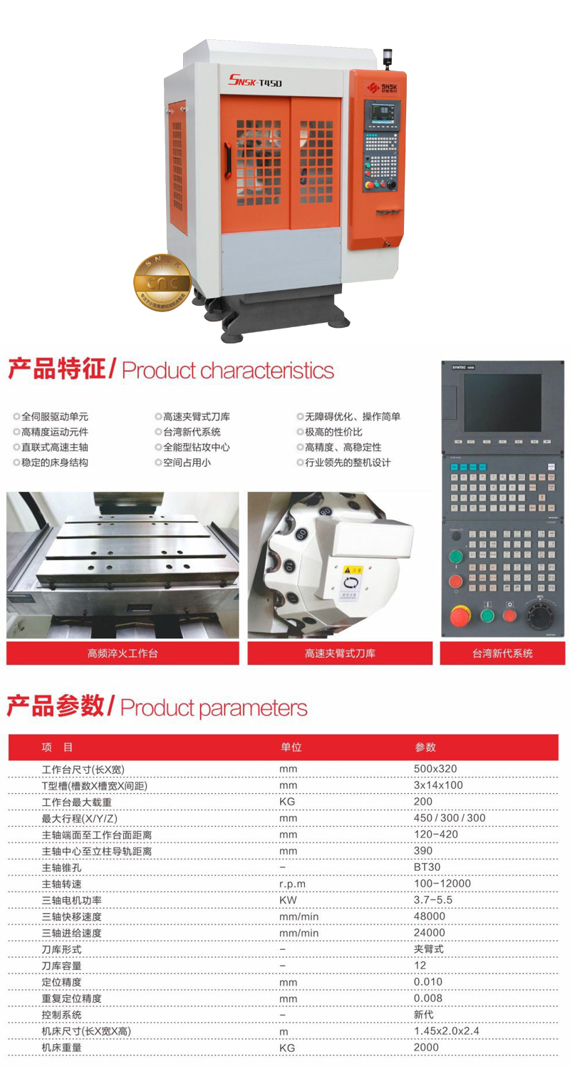 产品名称:高速钻攻中心 产品型号:SN-T450 查看次数: